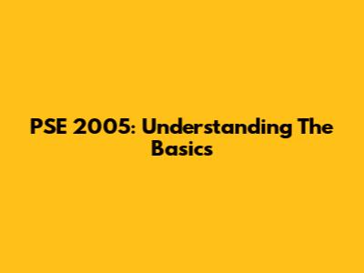 PSE 2005: Understanding The Basics