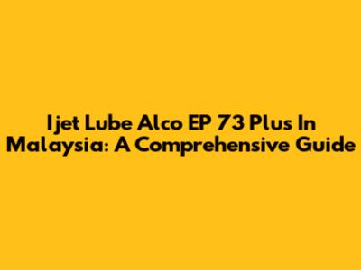 Ijet Lube Alco EP 73 Plus In Malaysia: A Comprehensive Guide