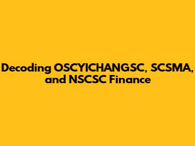 Hey everyone! Ever stumbled upon financial acronyms that seem like a secret code? Today, we're diving headfirst into the world of OSCYICHANGSC, SCSMA, and NSCSC finance. It might sound intimidating at first, but trust me, we'll break it down into bite-sized pieces so you can totally grasp what's going on. We'll explore what these acronyms stand for, what they relate to, and why you should care. Grab your favorite drink, sit back, and let's get started. By the end of this article, you'll be navigating these financial terms like a pro, and be able to easily speak the language of finance, with complete confidence and understanding!