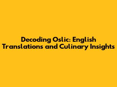 Unveiling "Oslic": The English Translation Explained