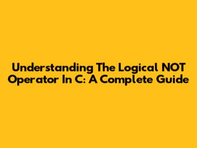 Understanding The Logical NOT Operator In C: A Complete Guide
