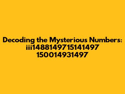 Initially, it's essential to understand that without context, a sequence of numbers like iii1488149715141497 150014931497 can represent anything. It could be a code, a date, a product identifier, or even a mathematical sequence. It's like finding a mysterious map – the treasure is there, but we need to figure out where to start digging! Our goal is to dissect this number string meticulously, exploring potential meanings and significance. We'll examine different possibilities, from simple numeric interpretations to more complex coded messages.