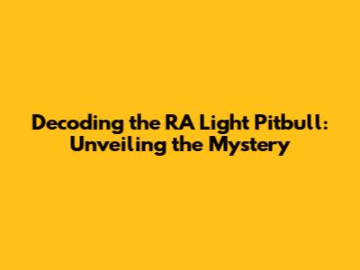 Hey guys! Ever heard of the RA Light Pitbull and wondered what it's all about? You're not alone! This term often pops up in online discussions and dog forums, sparking curiosity and sometimes confusion. Let's dive deep into unraveling the mystery behind the RA Light Pitbull, covering everything from its possible origins and traits to the common misconceptions surrounding it. Whether you're a seasoned Pitbull enthusiast or just starting to learn about these incredible dogs, this guide will shed some light on the topic. Understanding the nuances of dog breeds, especially those with varied lineages like Pitbulls, requires careful consideration and a willingness to look beyond simple labels. The term "RA Light" itself is not a recognized breed standard or official designation by any major kennel club. So, what does it really mean when someone refers to an RA Light Pitbull? It's essential to approach this topic with an open mind and a critical eye, separating fact from fiction and relying on credible sources of information. By exploring the possible meanings and characteristics associated with this term, we can gain a better appreciation for the diversity within the Pitbull community and promote responsible dog ownership. Remember, every dog is an individual, and generalizations based on breed or perceived lineage should always be taken with a grain of salt. Ultimately, the goal is to understand and appreciate each dog for its unique qualities and to provide them with the love, care, and training they deserve.