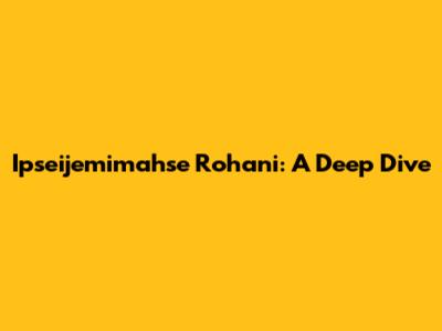 Ipseijemimahse Rohani: A Deep Dive