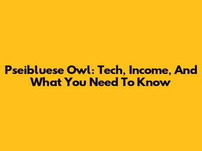 Pseibluese Owl: Tech, Income, And What You Need To Know