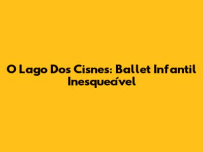 O Lago Dos Cisnes: Ballet Infantil Inesquecível