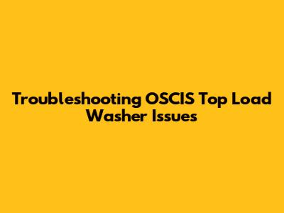 Troubleshooting OSCIS Top Load Washer Issues