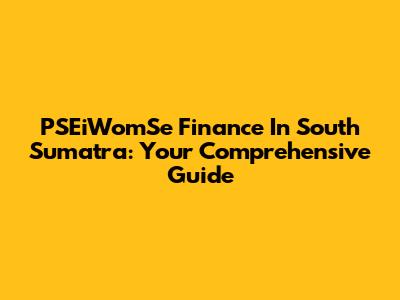 PSEiWomSe Finance In South Sumatra: Your Comprehensive Guide