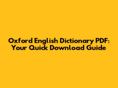 Oxford English Dictionary PDF: Your Quick Download Guide