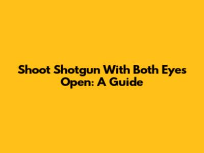 Shoot Shotgun With Both Eyes Open: A Guide