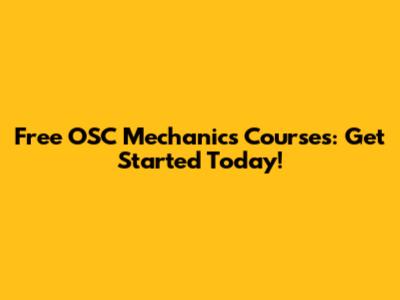 Free OSC Mechanics Courses: Get Started Today!