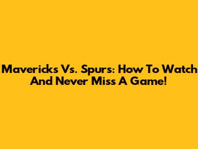 Mavericks Vs. Spurs: How To Watch And Never Miss A Game!
