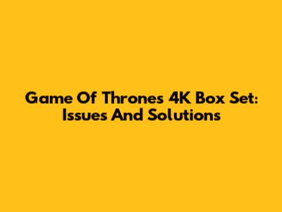 Game Of Thrones 4K Box Set: Issues And Solutions