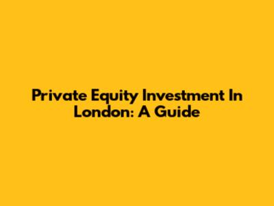 Private Equity Investment In London: A Guide