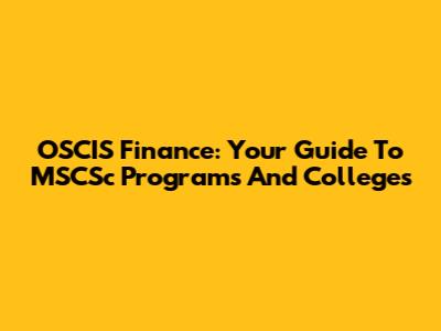 OSCIS Finance: Your Guide To MSCSc Programs And Colleges