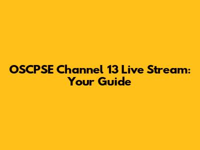 OSCPSE Channel 13 Live Stream: Your Guide