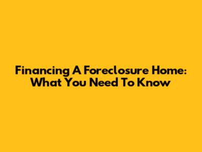 Financing A Foreclosure Home: What You Need To Know