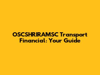 OSCSHRIRAMSC Transport Financial: Your Guide