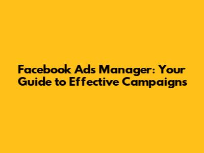 So, what exactly is the Facebook Ads Manager? Think of it as your central hub for creating, managing, and tracking your ad campaigns on Facebook and Instagram. It’s where you set your budget, choose your audience, design your ads, and see how well they're performing. The Ads Manager provides a detailed overview of your campaigns, allowing you to make data-driven decisions and optimize your ads for better results. With the Ads Manager, you can target specific demographics, interests, behaviors, and locations, ensuring your ads reach the right people. You can also track key metrics such as impressions, clicks, conversions, and return on ad spend (ROAS), giving you valuable insights into your campaign's effectiveness. Whether you're a small business owner, a marketing professional, or an individual looking to promote your content, the Facebook Ads Manager is an essential tool for achieving your advertising goals. It’s designed to be user-friendly, with a range of features and options that cater to different levels of expertise. By mastering the Ads Manager, you can create highly targeted and effective ad campaigns that drive results and help you achieve your business objectives.