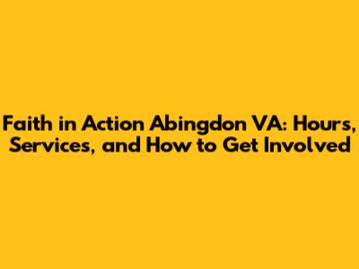 Hey there, folks! Let's dive into something super important: Faith in Action Abingdon VA. This organization is a real gem in the Abingdon community, offering a helping hand to those in need. If you're looking to lend a hand, need some assistance, or just want to learn more, you're in the right place. We'll be covering everything from their operating hours to the awesome services they provide and how you can get involved. So, grab a coffee, sit back, and let's explore what makes Faith in Action such a vital part of Abingdon, Virginia!
