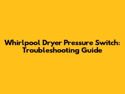 Whirlpool Dryer Pressure Switch: Troubleshooting Guide