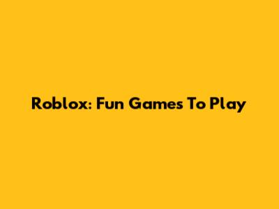 Roblox: Fun Games To Play