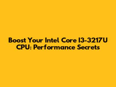 Boost Your Intel Core I3-3217U CPU: Performance Secrets