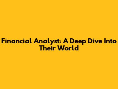 Financial Analyst: A Deep Dive Into Their World
