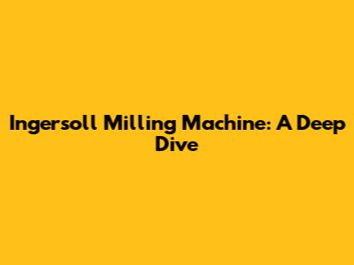 Ingersoll Milling Machine: A Deep Dive