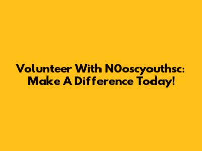 Volunteer With N0oscyouthsc: Make A Difference Today!