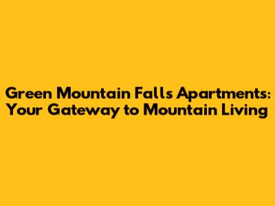 Green Mountain Falls Apartments: Your Gateway to Mountain Living