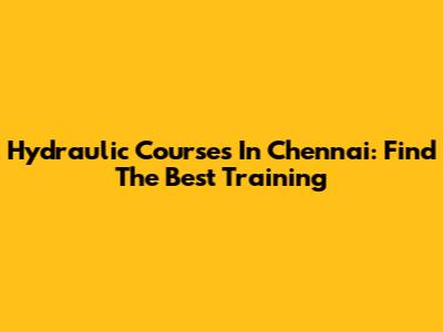 Hydraulic Courses In Chennai: Find The Best Training