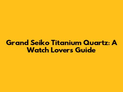 Grand Seiko Titanium Quartz: A Watch Lover's Guide