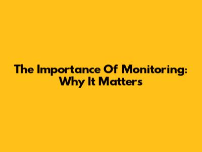 The Importance Of Monitoring: Why It Matters