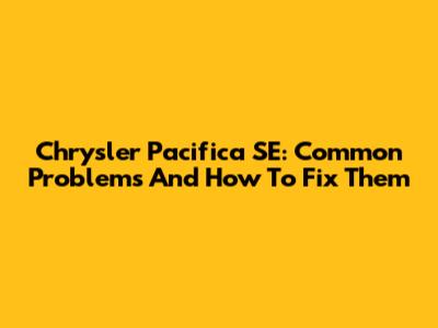 Chrysler Pacifica SE: Common Problems And How To Fix Them