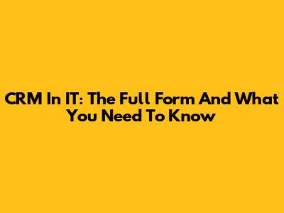 CRM In IT: The Full Form And What You Need To Know