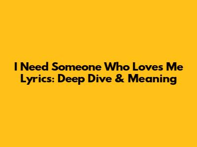 I Need Someone Who Loves Me Lyrics: Deep Dive & Meaning
