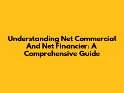 Understanding Net Commercial And Net Financier: A Comprehensive Guide