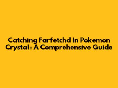 Catching Farfetch'd In Pokemon Crystal: A Comprehensive Guide