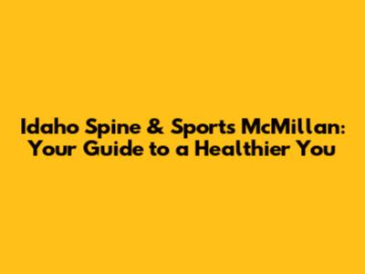 Idaho Spine & Sports McMillan: Comprehensive Guide