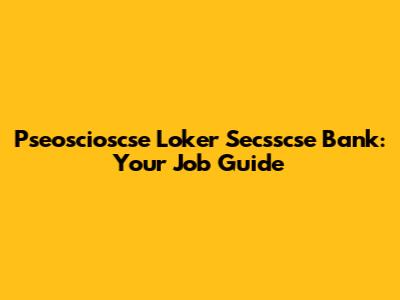 Pseoscioscse Loker Secsscse Bank: Your Job Guide