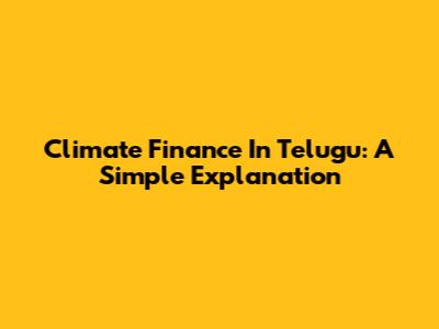 Climate Finance In Telugu: A Simple Explanation