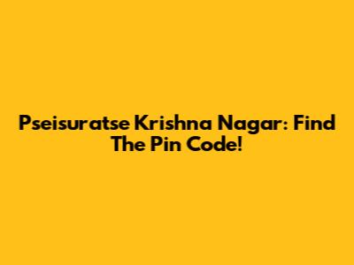 Pseisuratse Krishna Nagar: Find The Pin Code!