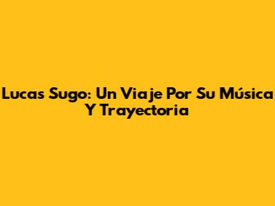 Lucas Sugo: Un Viaje Por Su Música Y Trayectoria