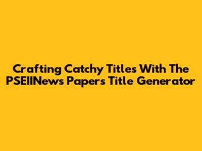Crafting Catchy Titles With The PSEIINews Papers Title Generator