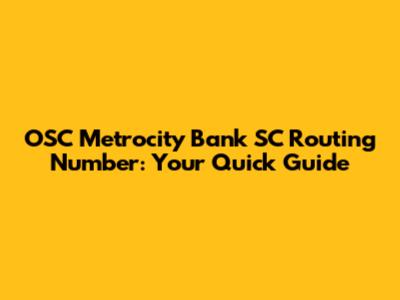 OSC Metrocity Bank SC Routing Number: Your Quick Guide