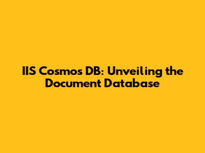 Hey guys! Ever wondered if IIS Cosmos DB is a document database? Well, you're in the right place! We're going to dive deep and explore the ins and outs of this super powerful database. Get ready to learn, because we're about to unpack everything you need to know about IIS Cosmos DB and its document database capabilities. Let's get started, shall we?