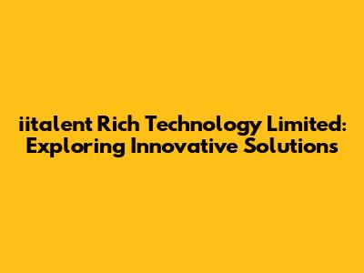 Hey guys! Ever heard of iitalent Rich Technology Limited? If not, you're in for a treat! This company is making waves with its innovative solutions and cutting-edge technologies. Let's dive deep into what makes iitalent Rich Technology a name to remember.