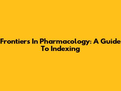 Frontiers In Pharmacology: A Guide To Indexing
