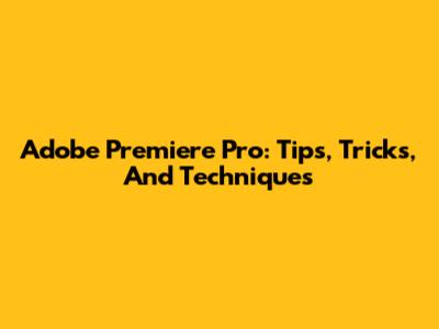 Adobe Premiere Pro: Tips, Tricks, And Techniques